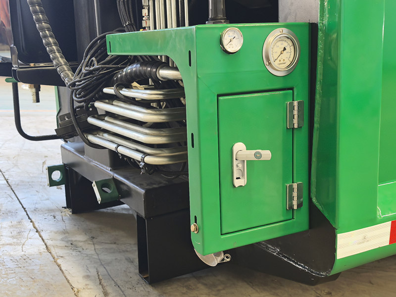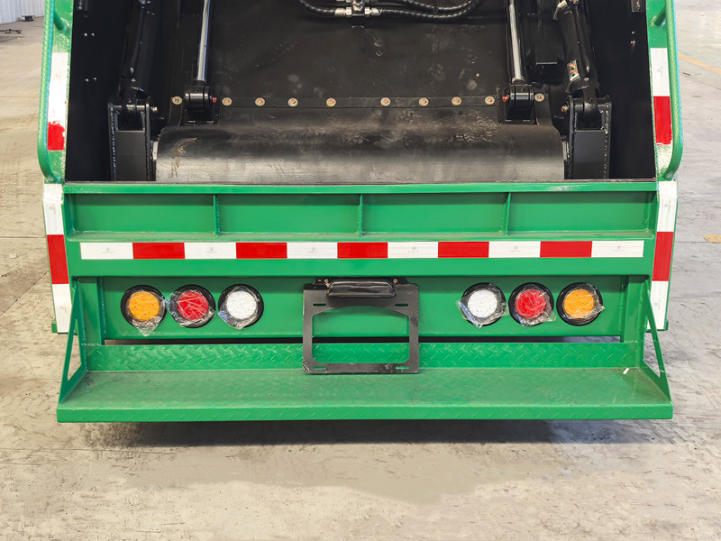 Ang katawan ng compactor sa likurang bahagi Ang matalinong elektronikong sistema ng kontrol ay tumpak na kumokontrol sa operasyon ng bawat bahagi. Ang disenyo ng dobleng-selyadong pinto sa likuran ay ganap na nag-aalis ng tagas. Ang pangkalahatang istraktura ay mahigpit na nasubukan, na tinitiyak ang tibay at pagiging maaasahan, na nagbibigay ng matibay na suporta para sa mahusay na mga operasyon sa sanitasyon.