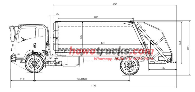 PLC control systemAng 10cbm rear loder compactor body, isang pangunahing kagamitan para sa mga operasyon sa sanitasyon sa lungsod, ay mahusay na pinagsasama ang pagkolekta, pag-compress, at transportasyon ng basura. Ang selyadong katawan nito ay gawa sa mga high-strength at wear-resistant steel plates. Nilagyan ng hydraulically driven loader at pusher blade, awtomatiko nitong dinudurog ang basura at nakakamit ang high-density compaction.