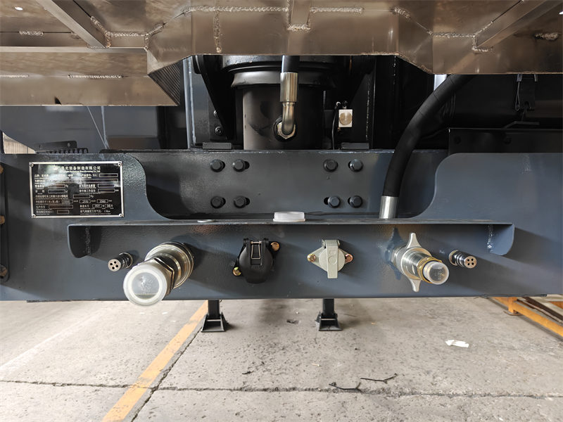 Thebago 3 ehe 40 toneladataga-tip Ang katawan ng trailer ay gawa sa materyal na Q370R, na may disenyong presyon na 1.61 MPa at kapal ng plato na 12-16 mm. Nilagyan ito ng HYVA hydraulic system at pressure gauge, tinitiyak nito ang kaligtasan habang ginagamit. Ang mga tampok tulad ng BPW bridge, JOST kingpins, at JOST outriggers ay nakakatugon sa mga pangangailangan sa transportasyon sa iba't ibang kapaligiran at kondisyon ng kalsada.