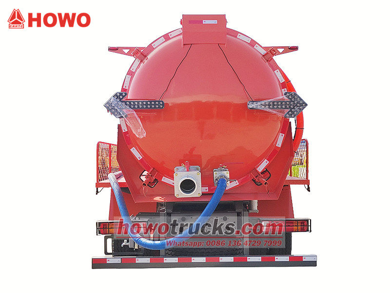 MORO or Jurop vacuum pumpAng 300hp Howo sewage suction truck ay isang sanitation vehicle na partikular na idinisenyo para sa paglilinis, pagsipsip, at pagdadala ng dumi sa alkantarilya, putik, dumi, at iba pang likidong dumi. Pinapatakbo ng isang high-vacuum pump, ipinagmamalaki nito ang malakas na kakayahan sa pagsipsip at mahusay na paglabas ng dumi sa alkantarilya, na nagbibigay-daan sa mabilis na pagkumpleto ng mga operasyon sa pagsipsip at pagdiskarga.