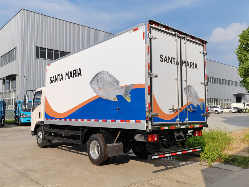 ◇Ang full-size na double-door sa likuran ay sumusuporta sa pag-access ng forklift, na nagpapabuti sa kahusayan ng pagkarga at pagbaba. • Kapasidad sa Pagkarga: Kayang magdala ng 5 toneladang pagkaing-dagat, angkop para sa maramihang transportasyon sa mga daungan ng pangingisda, mga pamilihang pakyawan, at iba pang mga lokasyon.