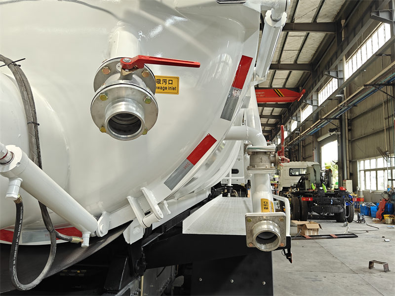 Karaniwang konpigurasyon | Nilagyan ng Inspect window, discharge valve, cleaning apparatus, 5 metrong haba na suction pipe, oil-water separator, overflow valve, atbp. Ang tangke ng vacuum ng silindro ay maaaring iangat nang haydroliko hanggang 40-45 digri. Ang pinto sa likuran ay maaaring buksan at isara nang haydroliko. | |
