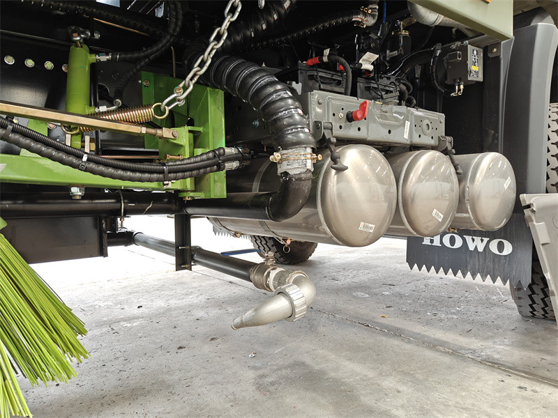 11500AngHowo 12 cbm na panglinis ng kalye na naka-mount sa trakay isang lubos na mahusay na sasakyan sa sanitasyon na idinisenyo para sa paglilinis at pagpapanatili ng mga kalsada sa lungsod, mga plasa, mga parkeng pang-industriya, at iba pang mga lokasyon. Nagtatampok ito ng 4,000-litrong tangke ng tubig na gawa sa carbon steel at isang 8,000-litrong basurahan na may linya na hindi kinakalawang na bakal. Kasama sa sistema ng pagwawalis ang apat na set ng mga disc brush at malalapad na suction cup, na nagbibigay-daan sa lapad ng pagwawalis na hanggang 3.5 metro, lapad ng high-pressure flushing na 2.5 metro, at maximum na kapasidad ng pagwawalis na 60,000 metro.³/h. Gumagamit ang sasakyan ng German high-pressure pump, Hangzhou low-pressure water pump, at Weiye blower, na sinamahan ng multi-stage spraying para sa pagsugpo ng alikabok, na nagreresulta sa mababang pagbuo ng alikabok habang ginagamit.