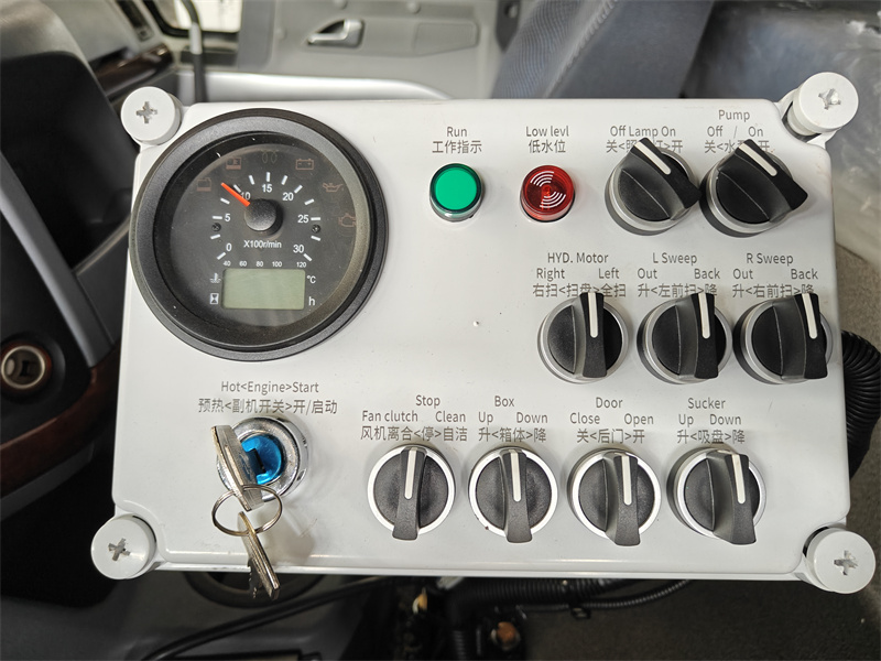 Ang intelligent electronic control system ay may kasamang dual operating boxes sa loob ng cabin at malapit sa mga suction cup, na nagbibigay-daan sa one-touch control ng mga function tulad ng pagtataas at pagbaba ng brush, pagtatapon ng tangke, at pagsisimula at paghinto ng blower, na tinitiyak ang maginhawa at mahusay na operasyon. Gumagamit ang sasakyang ito ng modular integrated design na nagsasama ng power system, sweeping system, water system, at intelligent control system upang makamit ang mahusay, nakakatipid sa enerhiya, at environment-friendly na mga operasyon.