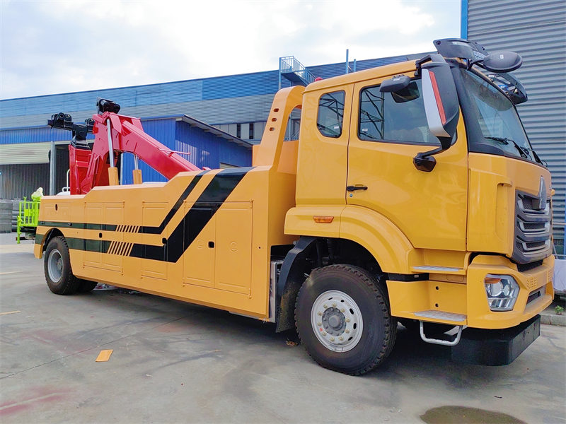 Ang Howo 4x2Ang trak na hila ay nilagyan ng matibay na hydraulic outrigger system (na-rate para sa lift 10.5 tonelada bawat outrigger), na nagbibigay ng malawak na saklaw ng suporta at tinitiyak ang kaligtasan at katatagan sa mga mabibigat na operasyon sa pagsagip. Ang dilaw na marangyang one-row and a half sleeper cab (may iba pang kulay na magagamit), 400L na tangke ng gasolina na may malaking kapasidad, 24V na sistemang elektrikal, kumpletong ilaw na babala (mga ilaw na babala, strobe light) at tool box at iba pang mga aksesorya ay ginagawa itong isang malawakang propesyonal na kagamitan sa paghila at pagsagip na may komprehensibong mga function at malakas na pagganap.