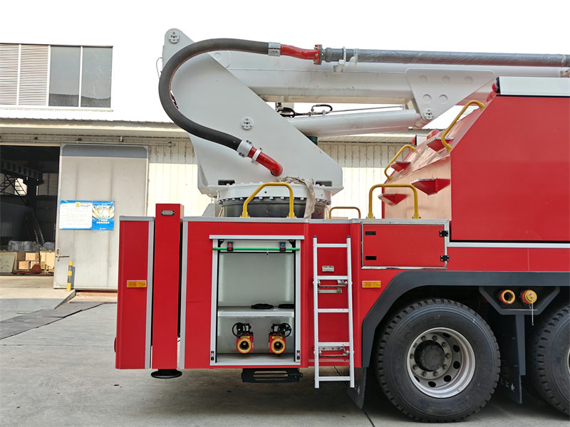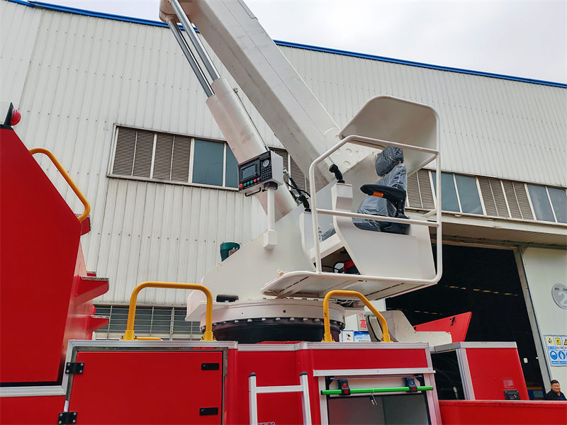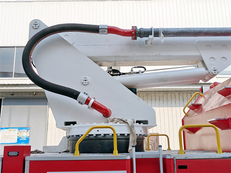 Ang bahaging slewing ay may gitnang slewing joint na kayang makamit ang walang katapusang 360-degree na anggulo ng slewing. HAng trak ng bumbero ng Owo na may mataas na abot at maaaring pahabain na tore ay may malaking daloy ng bomba ng bumbero at kanyon ng bumbero. Ang tangke ng tubig at daluyan ng tubig ay pawang gawa sa mataas na kalidad na hindi kinakalawang na asero at mga tubo na may mataas na lakas na aluminyo. Ang hydraulic system ay gumagamit ng high-performance pump at electric-liquid proportional control mode. Ang electrical system ay gumagamit ng mature at maaasahang controller na may teknolohiya ng komunikasyon na CAN bus, at multi-point centralized operation.