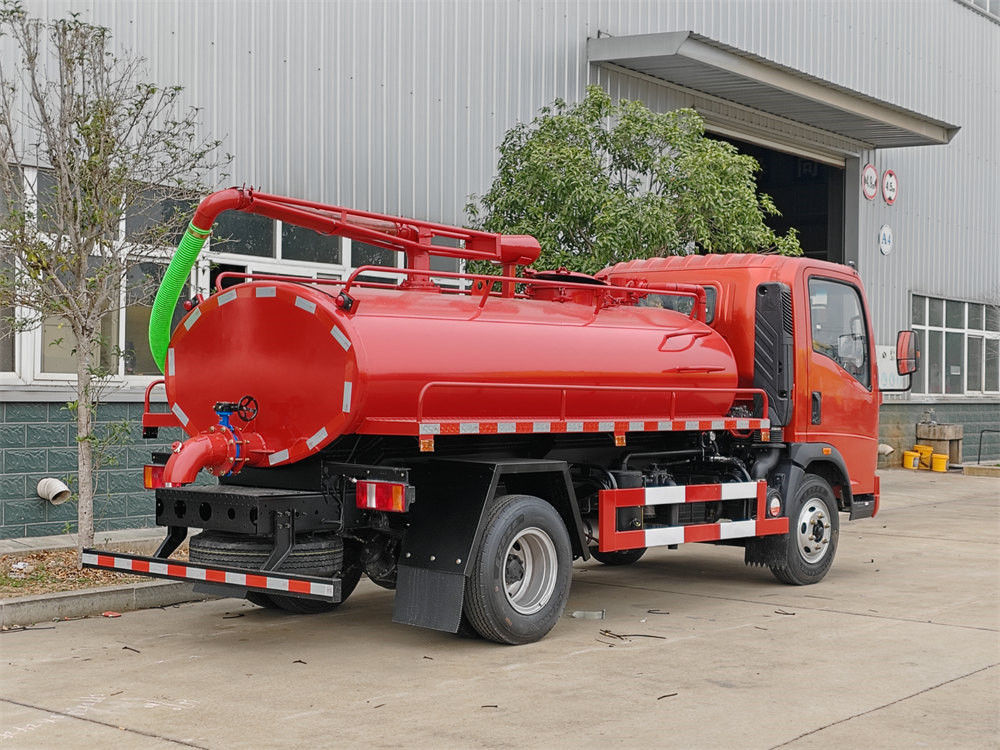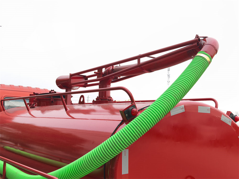 • Tangke: 4 metro kubiko na tangke ng bakal na carbon, ≥ 4mm ang kapal, ginamot gamit ang anti-corrosion at rust-resistant coating para sa mas mahabang buhay ng serbisyo. May 6-metrong retractable suction boom na naka-install sa ibabaw, na nagbibigay-daan sa multi-angle operation. May discharge valve na naka-install sa likuran, na nagbibigay-daan para sa gravity o compressed air-assisted discharge.