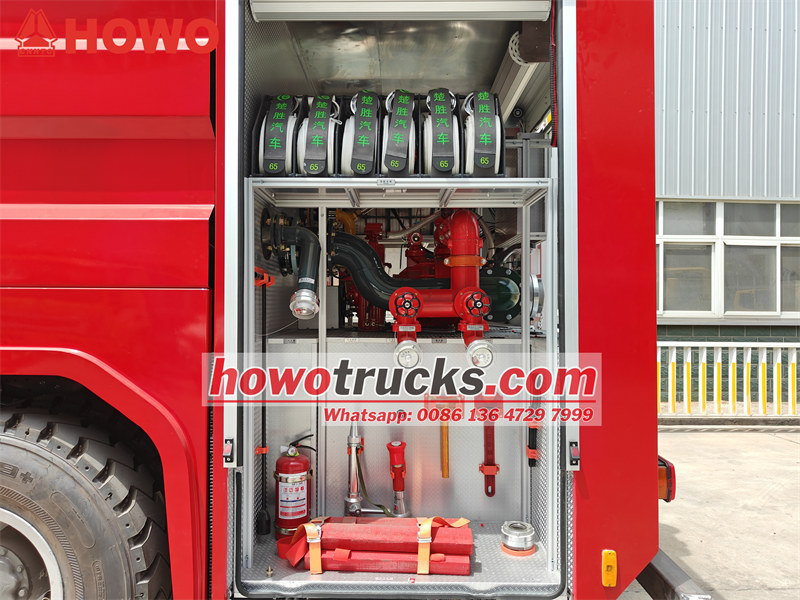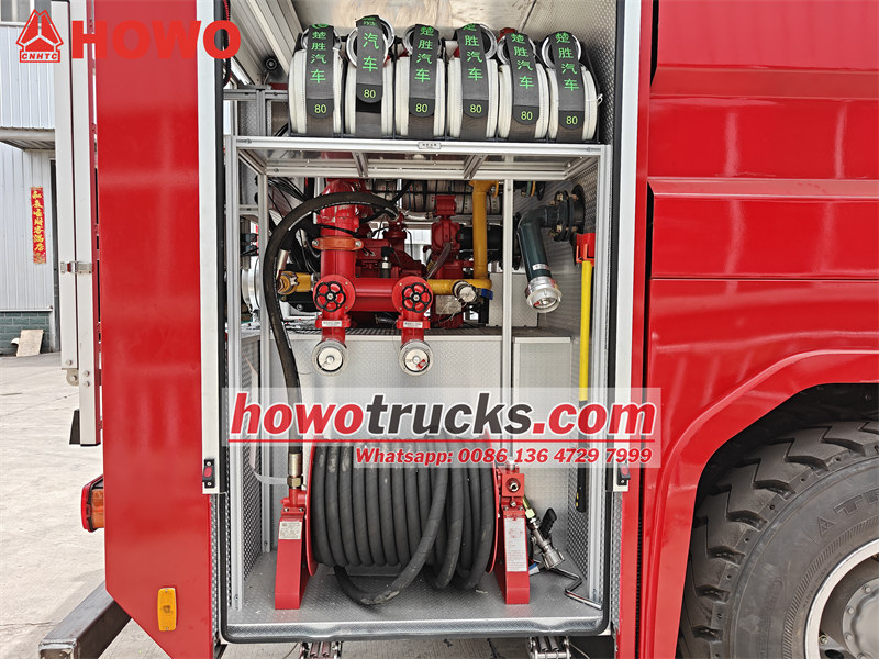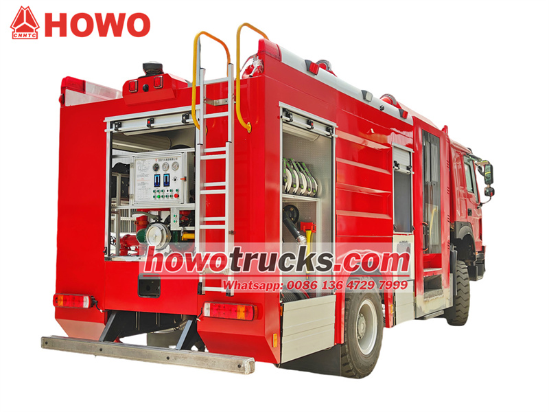 HOWO foam fire truck na nakakabit sa integrated tanker body, kabilang ang 6000L water tank at 2000L foam tank