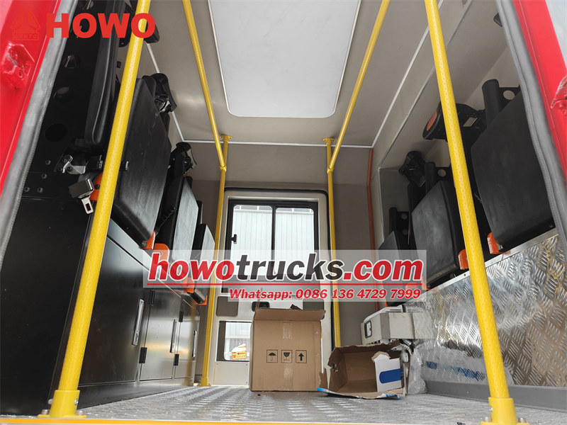 Ang lahat ng katawan ng tanker ng bumbero ay kumokonekta sa chassis ng trak ng HOWO sa pamamagitan ng mas malakas at maaasahang mga upuan, komportable at matibay