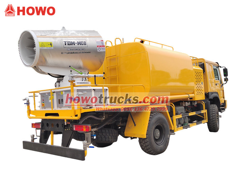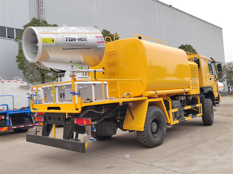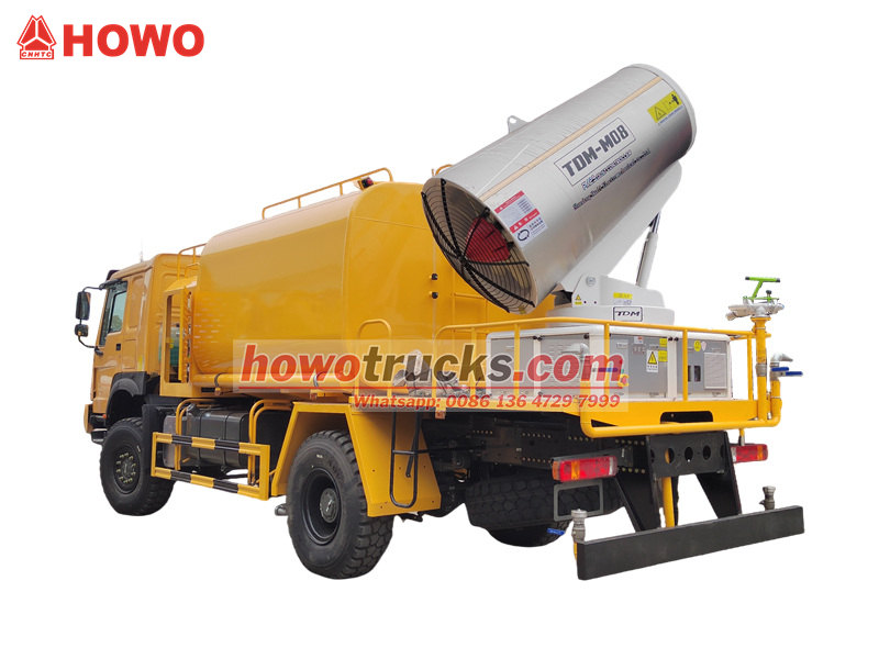 Ang HOWO 4×4 water cannon truck ay binuo gamit ang HOWO all-wheel-drive chassis, nilagyan ng 300HP engine at 4×4 drive system, na naghahatid ng natatanging pagganap sa masalimuot na lupain. Nagtatampok ng ultra-long-range na 80-meter water cannon na may 90 nozzle, kaya nitong mag-spray ng pinong water mist (20-200μm) na may maximum coverage area na 20,000㎡. Kapag sinamahan ng 10,000L na large-capacity water tank at high-pressure spraying system, mahusay nitong naisasagawa ang mga gawain tulad ng pagbabawas ng alikabok sa kalsada, pagsugpo sa alikabok sa construction site, at pag-spray sa agrikultura. Ito ay partikular na angkop para sa pagkontrol ng alikabok sa mga lugar ng pagmimina, daungan, pangangalaga sa kapaligiran ng lungsod, at iba pang larangan.