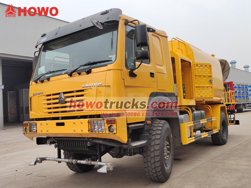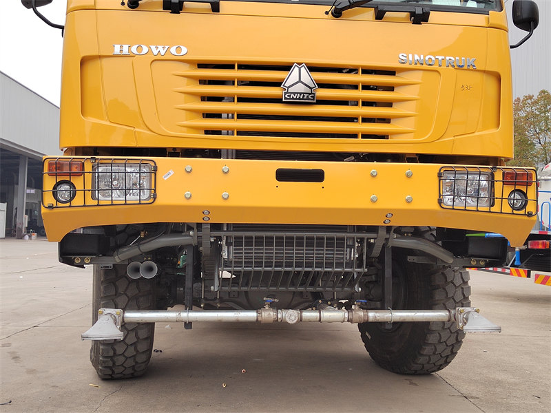 13000Ang HOWO 4×4 water tanker truck ay isang high-performance, multi-functional dust suppression vehicle na binuo sa matibay na HOWO 4×4 all-wheel-drive off-road chassis, na may pambihirang kakayahan sa off-road. Nilagyan ito ng STR cast front steering drive axle at ST16 rear drive axle, kasama ang malawak na disenyo ng wheelbase (2022/1830mm), na tinitiyak ang mahusay na katatagan sa masalimuot na lupain. Ang 4×4 drive system, na ipinares sa isang 300-horsepower na WD615.97C engine, ay naghahatid ng napakalaking torque na 1,340N·m, na nagbibigay-daan dito upang madaling makayanan ang mga matinding kapaligiran tulad ng mga bundok at disyerto.