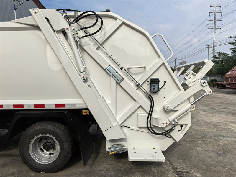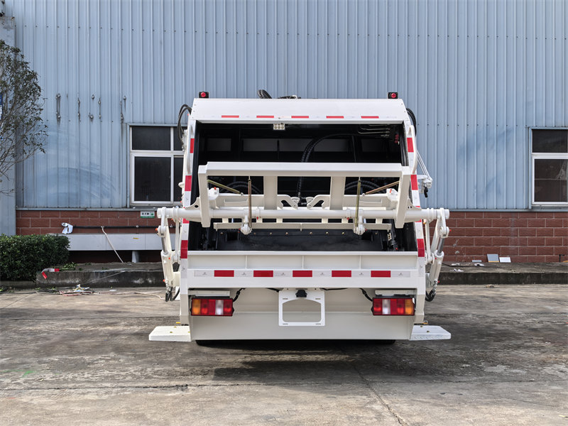 4. Mekanismo ng Pag-aangat ng Basurahan: Ang likurang bahagi ay nilagyan ng mekanismo ng pagbubuhat para sa paghawak ng mga basurahan na may maraming kapasidad, na nagbibigay-daan sa awtomatikong pagkarga at pagbaba.