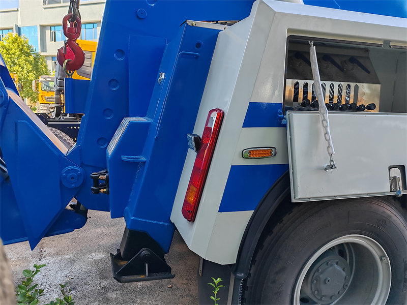 1. Kapasidad sa Pagbubuhat: Ang tungkulin ng pagbubuhat ay isang pangunahing katangian ng mga heavy-duty tow truck. Kabilang dito ang pagpapahaba, pag-urong, pagtataas, at pagtiklop ng braso ng paghila upang maiangat ang isang sasakyang may kapansanan mula sa harap o likuran at pagkatapos ay hilahin ang buong sasakyan palayo sa pinangyarihan. Ang lift assembly ng trak ay may iba't ibang anyo ng istruktura, na karaniwang may kakayahang iangat ang mga ehe, gulong, leaf spring, o frame ng sasakyang may insidente, na tinitiyak ang madaling pag-install at pag-alis.