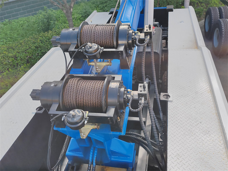 Nilagyan ng 2 pirasong 10 toneladang hydraulic winch at isang 45-metrong steel wire rope na may diyametrong 18 mm. Ang winch ay isa sa mga pangunahing bahagi ng HOWO 8×4 tow truck. Pangunahin itong ginagamit para sa pagbubuhat ng mga sasakyang may kapansanan papunta sa tow arm at gumagana kasabay ng mga hydraulic cylinder upang makamit ang mga tungkulin tulad ng paghila, pagbubuhat, at pag-secure ng mga gulong ng sasakyan.