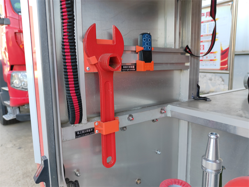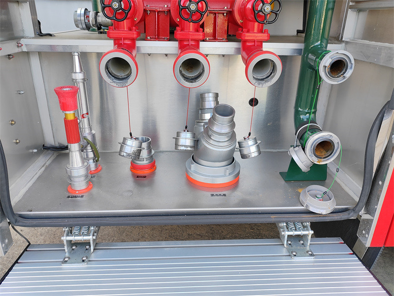 3. Kahon ng Kagamitan sa Ibabang Bahagi: Matatagpuan sa ilalim ng tangke, nag-aalok ito ng mataas na paggamit ng espasyo. Nagtatampok ito ng rolling door na gawa sa aluminum alloy na madaling buksan at hindi tinatablan ng tubig at alikabok. Naglalaman ito ng iba't ibang kagamitan sa pag-apula ng sunog: