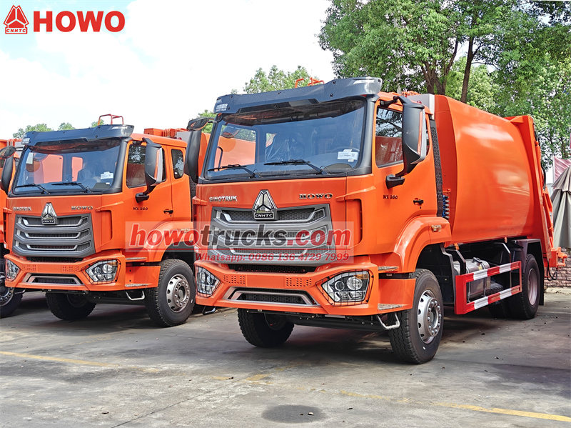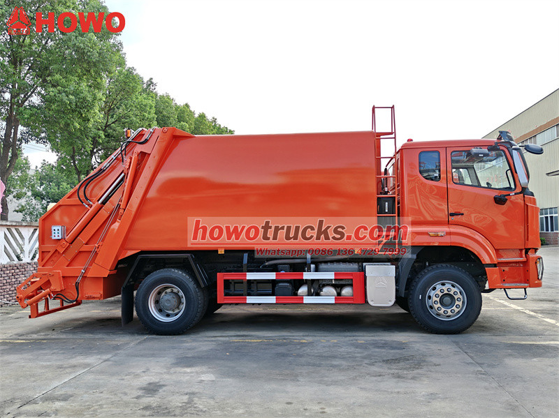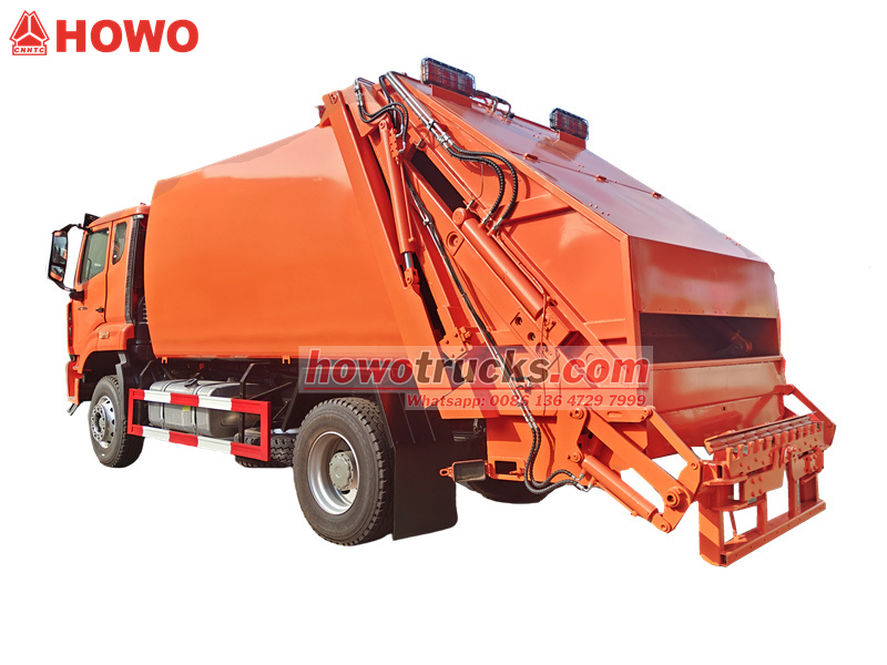 Mga trak ng compactor ng basura na HOWO 15cbm rear loader, handa nang ipadala sa Gitnang Silangan