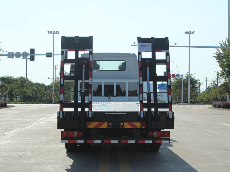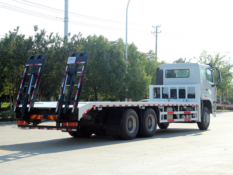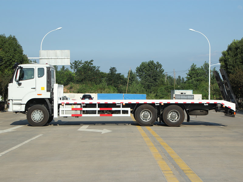 Ito Trak na self-loading ng HOWO NX ay may mga propesyonal at makapangyarihang katangian. Ang kama ay gawa sa 8 mm na kapal na anti-slip patterned steel plates, na may sukat na 8600×2500 mm, na partikular na idinisenyo para sa ligtas na transportasyon ng mga katamtamang laki ng excavator at iba pang kagamitan. Ang likurang bahagi ng sasakyan ay nilagyan ng dalawang 2-metrong haba na hydraulic ramp upang mapadali ang pagkarga at pagbaba ng makinarya. Bukod pa rito, ang dalawang front lifting hydraulic outriggers, bawat isa ay may kapasidad na 20 tonelada, ay makabuluhang nagpapahusay sa katatagan habang ginagamit sa hindi pantay na lupain. Isang 4-toneladang hydraulic winch ang naka-install din sa harap, na magagamit para sa mga gawain sa pagbawi o pag-secure ng kagamitan, na lubos na nakakatugon sa mga pangangailangan ng mga gumagamit sa Pilipinas para sa versatility at reliability.