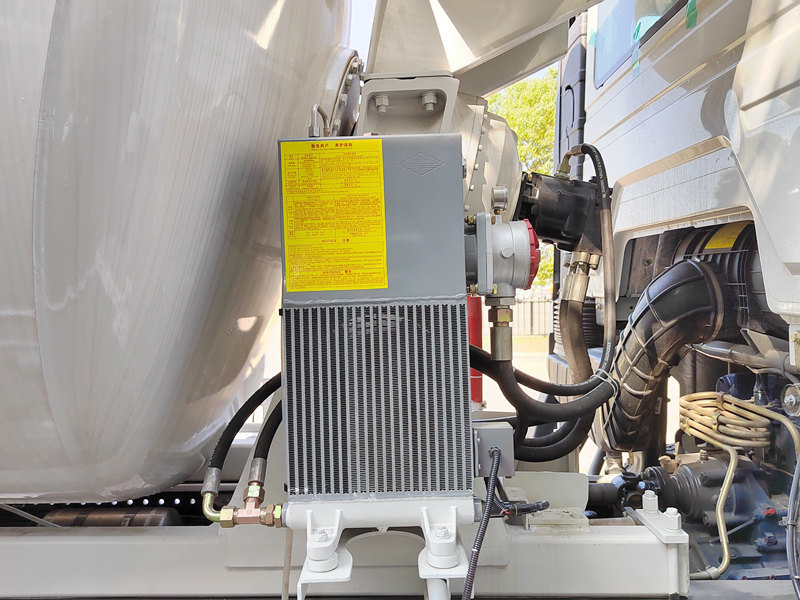 2. Sistema ng Haydroliko na Transmisyon: Kino-convert ng sistemang ito ang lakas ng makina na nakukuha sa pamamagitan ng power take-off (PTO) tungo sa hydraulic energy (displacement at pressure), na pagkatapos ay inilalabas sa motor bilang mechanical energy (speed at torque), na nagpapagana sa mixer drum.