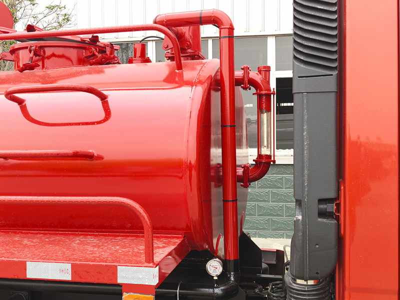●Ang trak ay may hydraulic lifting device, na ikinukurba ang tangke upang mas mapabilis ang paglabas ng basura. Ang discharge port ay dinisenyo para sa madaling pagkonekta sa mga tubo ng alkantarilya o mga pasilidad sa paggamot ng dumi sa alkantarilya.
