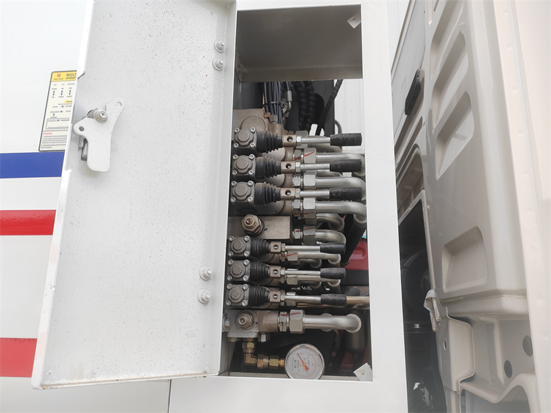 4. Operasyon sa maraming lokasyon: Nilagyan ng electric control panel na nakakabit sa cab, manual hydraulic lever sa gilid ng driver, at electric control box sa likurang pinto, ang sasakyan ay nag-aalok ng maginhawang operasyon mula sa maraming posisyon.