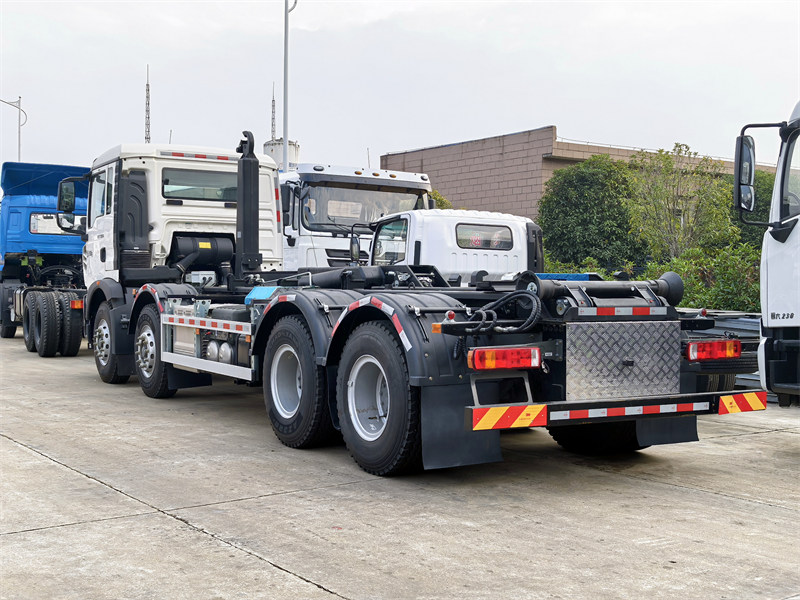 Ito ay isang mataas na pagganapMabigat na Howo TXtrak na pang-hooklift ng basura, na nagtatampok ng katumpakan ng disenyo ng inhinyeriya ng mga modernong sasakyan sa sanitasyon sa lungsod. Nilagyan ngWeichaiWP8.350E626-makinang diesel na may silindro na may na-rate na lakas na350HP, hindi lamang ito makapangyarihan kundi ligtas din sa kapaligiran.Angkabuuang masa ng33000kg, kapasidad ng pagkarga na20tonelada, at pinakamataas na bilis na 105km/h.