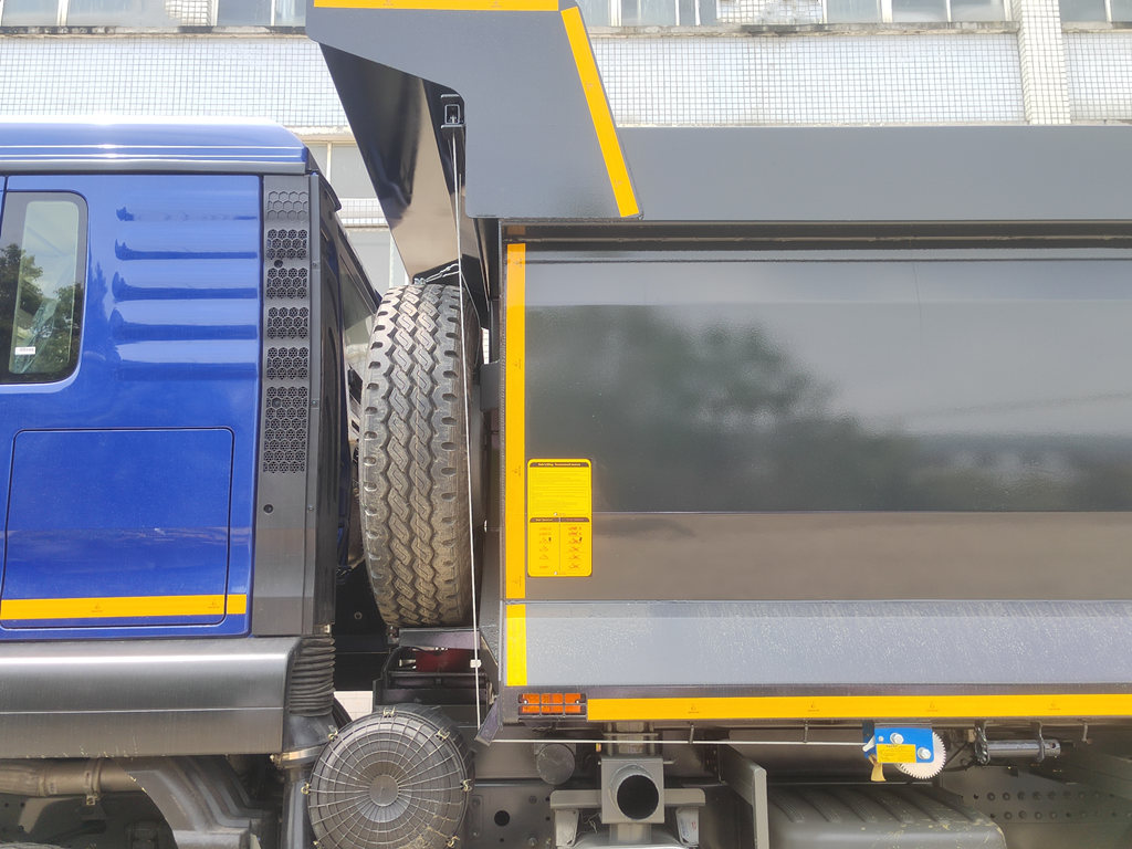 Ito ay nilagyan ng WP10.380E22 380HP diesel engine at HW19710 gearbox, na may wheelbase na 3200+1400mm. Ito ay isang matibay at maraming gamit na dump truck, ang karwahe ay mahusay na dinisenyo. Sa pamamagitan ng hydraulic lifting device, maaari itong magdulot ng mabilis at awtomatikong pagtatapon ng mga kargamento, maging ito man ay buhangin, karbon o lupa, at maaari itong mahusay na maibaba ang kargamento, na lubos na nakakatipid ng lakas-paggawa at oras.