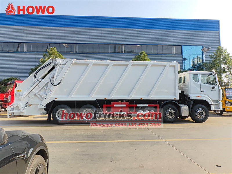 Garbage container capacity can be customizedAng Trak ng compactor ng basura na Sinotruk Howo 30cbm sa Nigeria ay isang lubos na mahusay na kagamitan sa sanitasyon na may mabibigat na tungkulin. Ginawa gamit ang Sinotruk NX H77L chassis, ang pangunahing bahagi nito ay isang 30-cubic-meter compactor box. Gumagamit ito ng advanced electric, pneumatic, at hydraulic combined control at isang CAN-BUS integrated electronic control system, na sumusuporta sa multi-point operation mula sa cab at likuran. Sa pamamagitan ng bidirectional compression technology, nakakamit nito ang mataas na compression ratio na ≥3:1, na nagpoproseso ng mahigit 15 tonelada ng basura bawat biyahe. Malaking pagpapabuti sa kahusayan sa pagkolekta at transportasyon ng basura, ito ay isang mainam na solusyon para sa Nigeria upang makamit ang pagbawas ng dami ng basura at mahusay na paglilipat.