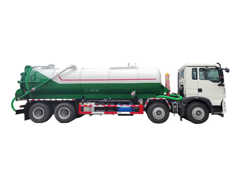 17500Ang HOWO TX 25000L vacuum tank truck ay isang espesyalisadong sasakyang pangsanitasyon na idinisenyo para sa mahusay na pagsipsip, transportasyon, at pagtatapon ng likidong dumi at putik. Ginawa sa isang HOWO TX 8×4 heavy-duty chassis, pinapagana ito ng 350-horsepower engine at isang HW19710 10-speed transmission, na sinusuportahan ng isang malaking 400L fuel tank. Kasama sa superstructure ang isang 25-cubic-meter vacuum tank na gawa sa 6mm na mataas na kalidad na carbon steel, na isinama sa isang SK-20 water-ring vacuum pump na may kakayahang makamit ang maximum na suction rate na 20m³/min at isang ultimate vacuum level na 8300Pa, na tinitiyak ang malakas na suction at corrosion resistance.