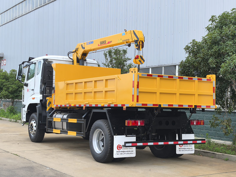 16000Ang SINOTRUK HOWO dump truck na may crane ay isang multi-functional heavy-duty engineering vehicle na pinagsasama ang kakayahan sa self-dumping at lifting. Binubuo ito ng apat na pangunahing bahagi: SIONTRUK heavy duty chassis, XCMG SQ4SK2Q three-section telescopic boom crane, hydraulic system, at dumping cargo box. Pinapagana ng Weichai 220 hp engine at 10-speed manual transmission, pinagsasama nito ang parehong lifting at dumping functions. Hindi tulad ng mga ordinaryong truck-mounted crane, makabago nitong isinasama ang cargo box lifting system, na nagbibigay-daan sa mga operasyon ng pagbubuhat sa loob ng 8.1-metrong working radius habang nagsasagawa rin ng material self-unloading.