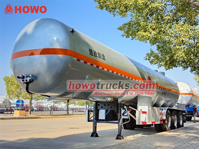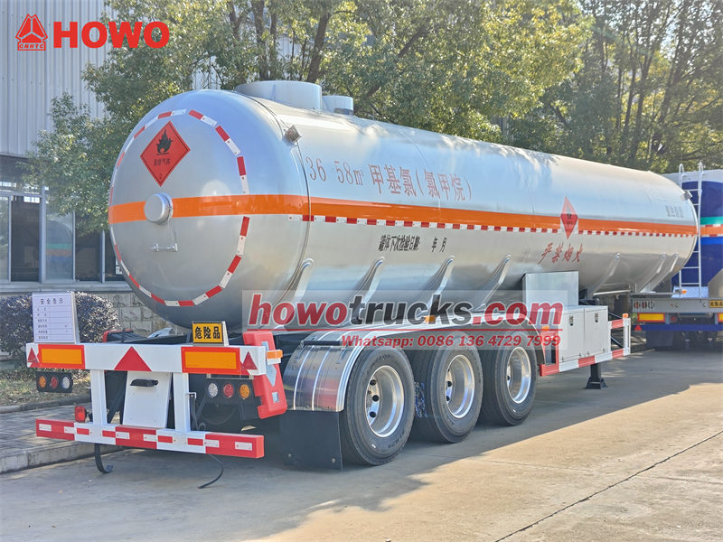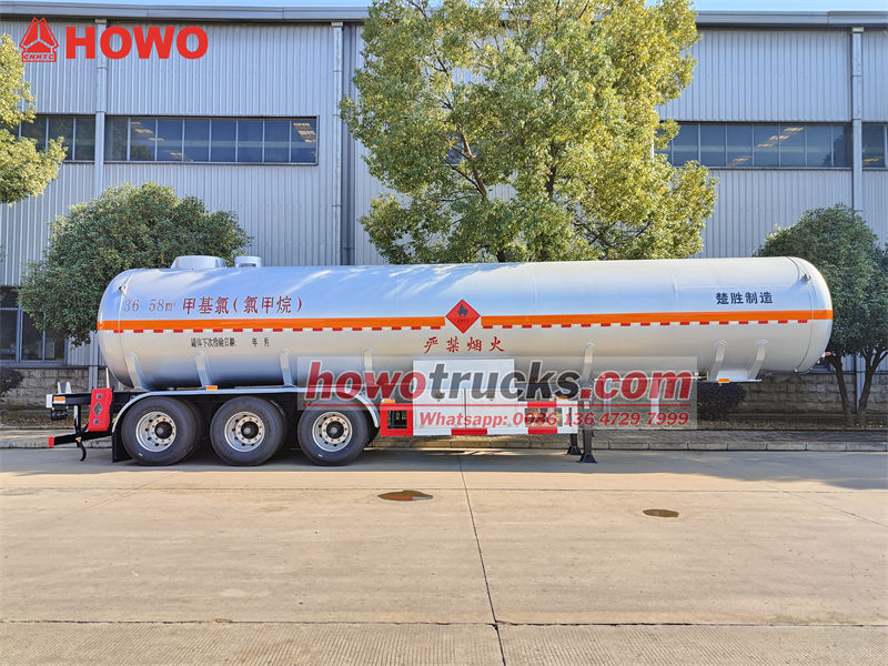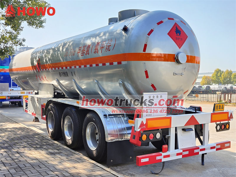 13 tonAng CS9402GYQA chemical liquid tank semi-trailer ay isang tri-axle tanker na partikular na idinisenyo para sa pagdadala ng mga kemikal tulad ng methyl chloride, na may volume ng tangke na 40 cubic meters. Ang tangke ay gawa sa 8mm high-strength Q420R steel plates, na ang mga head ay gawa sa 16MnDR na materyal. Mayroon itong design pressure na 1.27 MPa at working pressure na 1.2 MPa, na nagtatampok ng dual-side loading at unloading capabilities. Ang sasakyan ay nilagyan ng dual aluminum alloy valve boxes, emergency shut-off valve, liquid level at pressure monitoring systems, pati na rin ang mga anti-static grounding straps at fire suppression devices upang matiyak ang ligtas at maaasahang transportasyon ng kemikal.